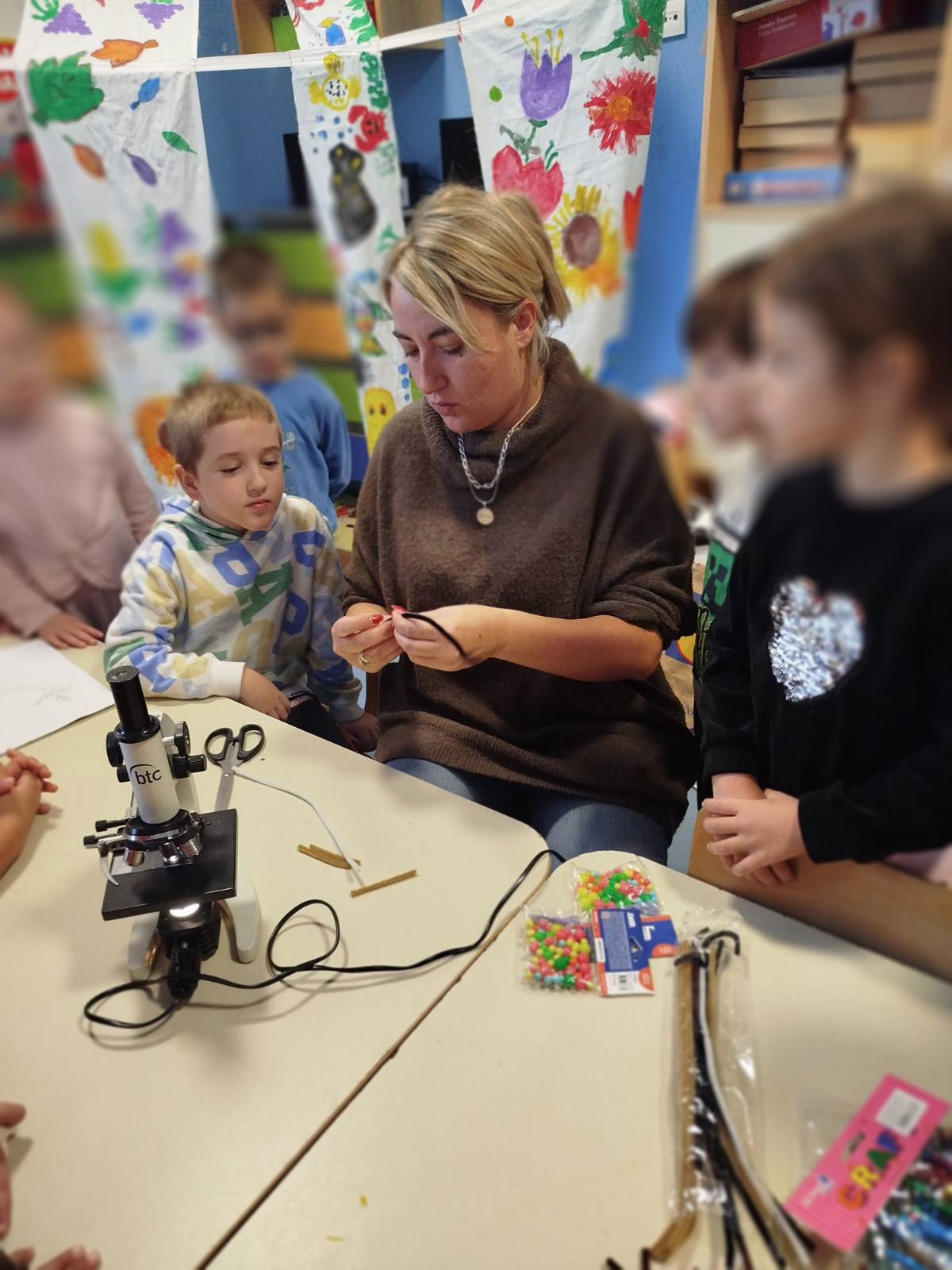 Tokom radionice razgovarali smo o tome kako funkcioniše mozak, šta su neuroni i na koji način međusobno komuniciraju. Kroz interaktivne aktivnosti, deca su imala priliku da modeluju neurone, posmatraju mozak pod mikroskopom i učestvuju u razgovoru o funkcijama koje mozak svakodnevno obavlja.